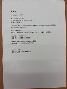 後日、寄付先から感謝のお手紙をいただき、社員一同、心温まる機会となりました。